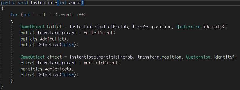 총알과 파티클을 생성하는 부분입니다.