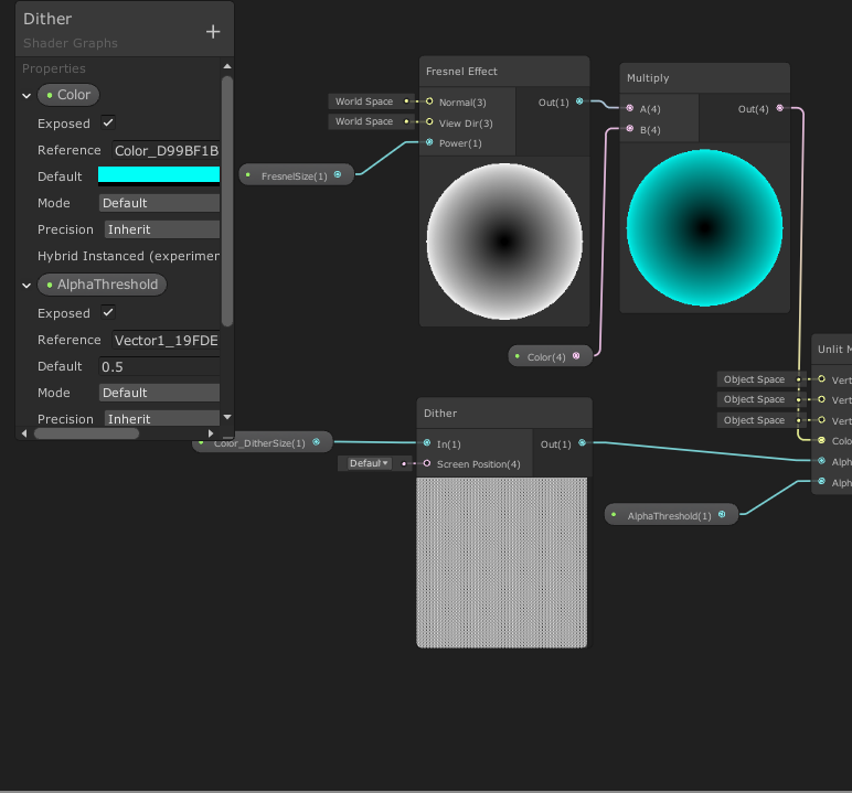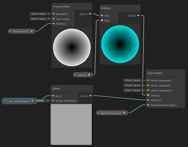 Dither, Fresnel Effect, Multiply 모두 생성해주세요
