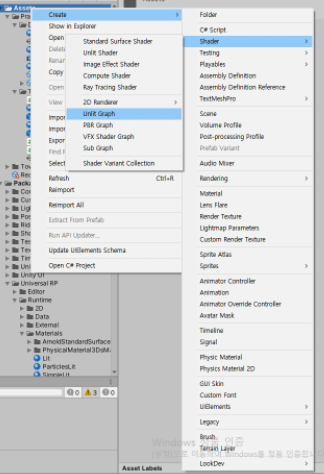 만약 Asset 우클릭 - Create - Shader - Unlit Graph가 안보인다면