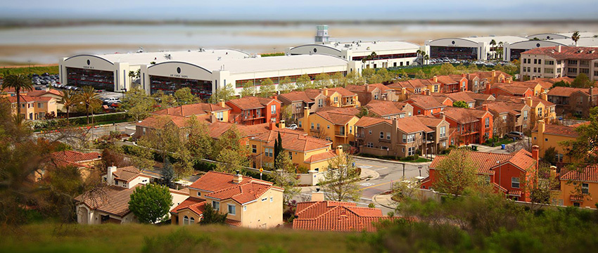 뎁스오브필드(피사계심도) 효과는 큰 센서 카메라의 영화 같은 느낌을 줄 수 있습니다. 씬에서 인식되는 스케일을 바꾸는 데도 사용할 수 있습니다(틸트 시프트 카메라 렌즈의 축소 효과와 비슷). 예를 들어 아래 이미지는 피사계심도 효과를 적용하여 축소 모형처럼 보이게 한 실제 사진입니다.