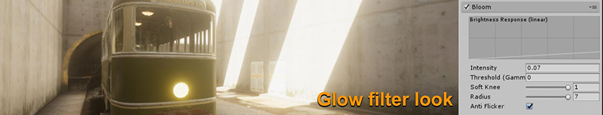 이런 기능을 과도하게 사용하면 역효과가 발생할 수도 있습니다. 위 그림 중 첫 번째 샘플에서 이러한 역효과를 확인할 수 있습니다. 고강도 픽셀이 너무 많고 강도 임계값의 블룸이 매우 빠르게 시작됩니다.
