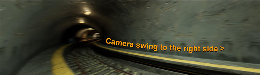 약간의 모션 블러를 사용하여 프레임 간 전환을 더욱 사실적이고 자연스럽게 블렌드할 수 있습니다. 하지만 애플리케이션에서 멀미의 위험을 줄이는 것 역시 중요합니다. 일반적으로 1인칭 또는 3인칭 카메라에서 볼 수 있듯 씬 전환에 큰 차이가 있는 경우 특히 주의해야 합니다. 60FPS로 렌더링하는 경우에도 플레이어가 카메라를 왼쪽에서 오른쪽으로 아주 빠르게 돌리면 떨리는 것처럼 보이고 모션 블러 없는 정지 모션처럼 보이는 광각 뷰를 예로 들 수 있습니다. 다음은 180도의 셔터 각도에서 나타나는 모션 블러의 예시입니다.